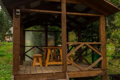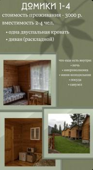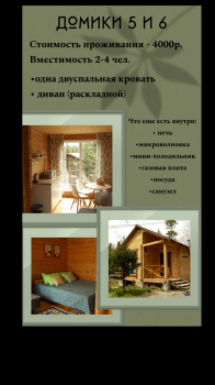 На участке расположены 7 благоустроенных домиков (2 осн. места + 2 доп. места)