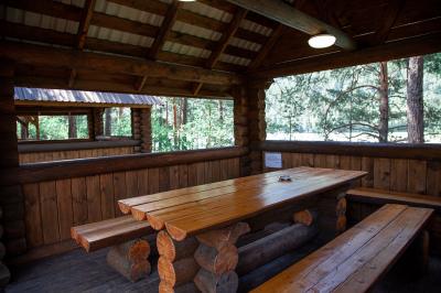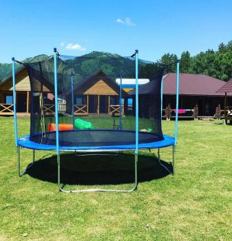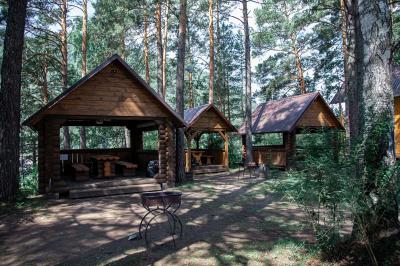 На территории базы беседки с видом на реку, со светом и розетками, безопасный спуск к реке, Wi-Fi, мангалы, детская площадка, батут, каркасный бассейн, шезлонги, парковка для автомобилей. Летняя кухня для самостоятельного приготовления пищи, на кухне электрическая плитка, чайник, термопот, микроволновая печь.