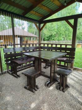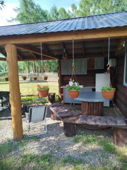 Уютная костровая зона для общения в кругу дружной компании. Крытая беседка дает приятную тень в знойный день или укроет от дождя в непогоду