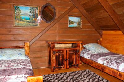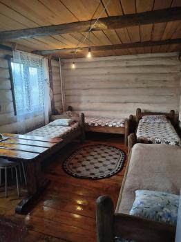 Четыре 1-спальных кровати, тумбочка. Лестница на второй этаж - снаружи дома