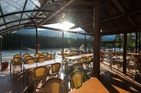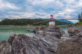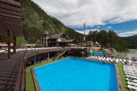 База представляет из себя туристический комплекс на двух берегах Катуни, соединенных подвесным пешеходным мостом.