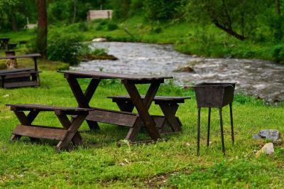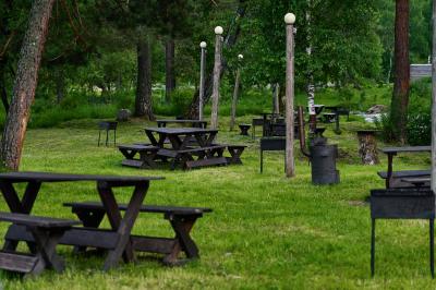 - МАНГАЛЬНАЯ ЗОНА. На базе есть мангальная зона для любителей вкусных стейков и овощей на гриле. Стоимость аренды мангала уточняйте у администрации, в неё входит мангал, уголь, решетки или шампуры, розжиг, а также у вас будет свой стол и лавочки возле реки. Кухни для гостей нет. Возможности готовить самим нет.