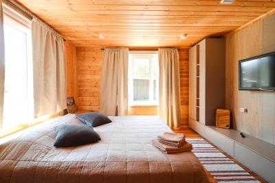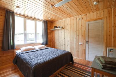 Отдельностоящий трехкомнатный дом с панорамными окнами, собственной огромной крытой террасой и видом на реку Узнезя. Тихое место для спокойного отдыха и единения с природой. Обратите внимание!!! Одна двуспальная кровать находится в общей комнате.
