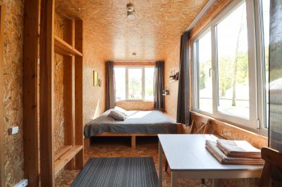 Размещение. На территории одноэтажные домики. Номерной фонд включает в себя 49 уютных и современных номеров, с отдельным входом, крытой террасой и удобствами. Мы заботимся о вашем комфорте. В каждом номере удобный ортопедический матрас и постельное белье премиум качества, комплект полотенец, холодильник.
