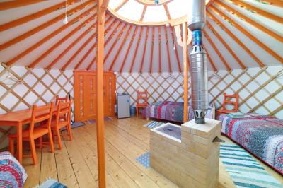 Комфортабельная четырехместная юрта на берегу реки Узнезя с колоритным национальным интерьером, с дровяной печью, которую можно затопить за отдельную плату. Собственная душевая комната в сан.блоке в 15 метрах. Экзотическое пространство для отдыха и наслаждения природой Алтая.