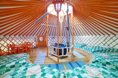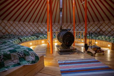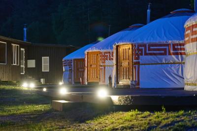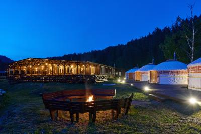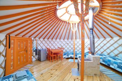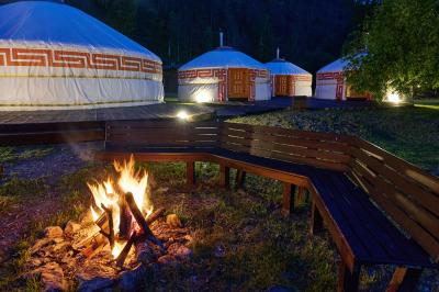 Комфортабельная семиместная юрта на берегу реки Узнезя с колоритным национальным интерьером, с дровяной печью, которую можно затопить за отдельную плату. Собственная душевая комната в сан.блоке в 15 метрах. Экзотическое пространство для отдыха и наслаждения природой Алтая.