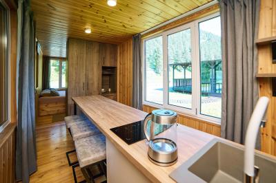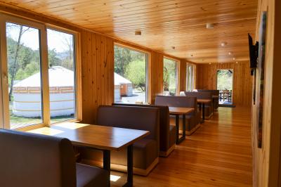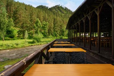 Вкусный завтрак, сытный обед или атмосферный ужин в просторном кафе-столовой на территории. В теплые дни вы можете расположиться на террасе кафе возле реки с великолепным видом на горы. Для прохладных вечеров есть два теплых зала. Все блюда мы готовим с любовью и заботой.