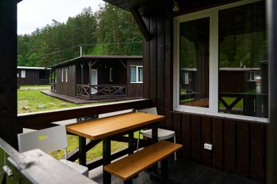 Отдельностоящий трехкомнатный дом с двумя спальнями, с собственной огромной крытой террасой и видом на реку Узнезя. Тихое место для спокойного отдыха и единения с природой.