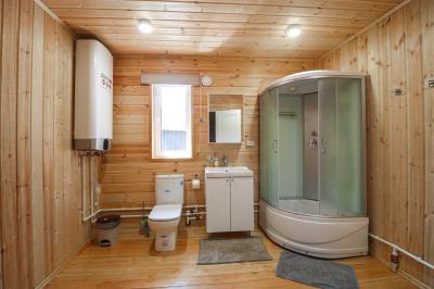 - Ванная комната (душевая кабина, раковина, унитаз, бойлер горячей воды, фен, сушсушилка для белья, комплект полотенец)