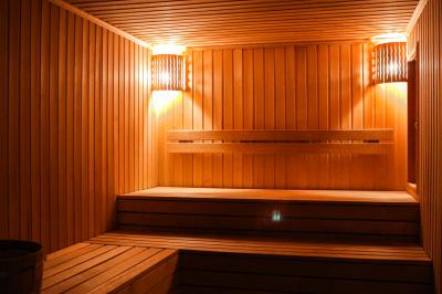 Вы можете посетить сухую, горячую сауну и расслабиться в комнате отдыха. Сауна без веников. Вместимость 8 человек.