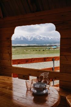 Наши домики представляют собой – аилы (6-уголная изба) с удобствами и без удобств с видом из окна на Северо-Чуйский хребет. Это даст вам ощутить на себе часть алтайской жизни.
