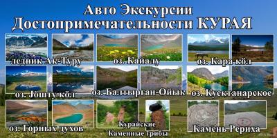 Осуществляются заброски на высокогорные достопримечательности: озера, ледники, экскурсии по Курайской степи.