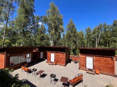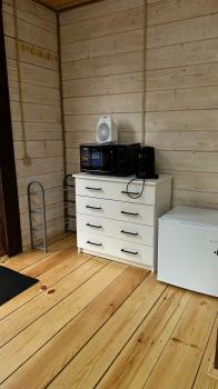 Благоустроенные отдельно стоящие домики 20 кв.м. вместимостью до 4 человек. В домиках: 2-х спальная кровать, раскладной диван, холодильник, микроволновая печь, чайник. Санузел с душем.