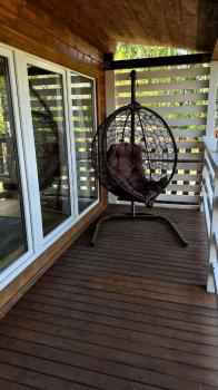 - большая терраса с прекрасным видом и мебелью из ротанга, качеля