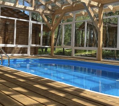 На нашей территории есть возможность хорошо провести время с пользой для здоровья, посетите нашу Баню с встроенным бассейном.