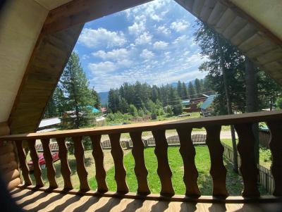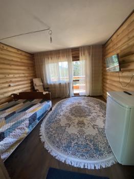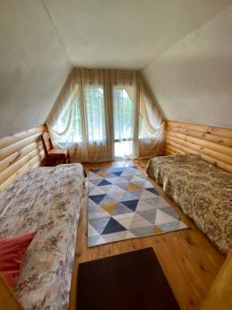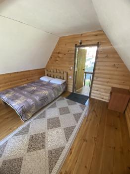 - Второй этаж: 2-спальная кровать, тумбочки, балкон. Вход в комнату - по лестнице с улицы.