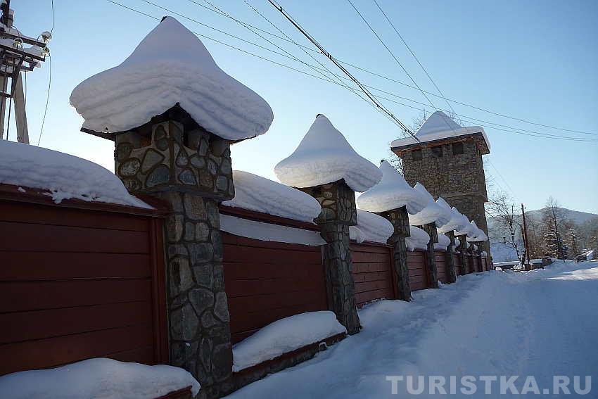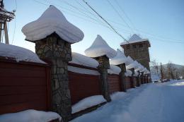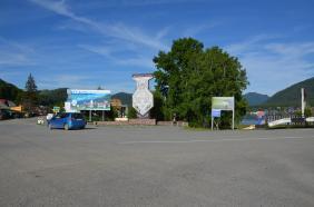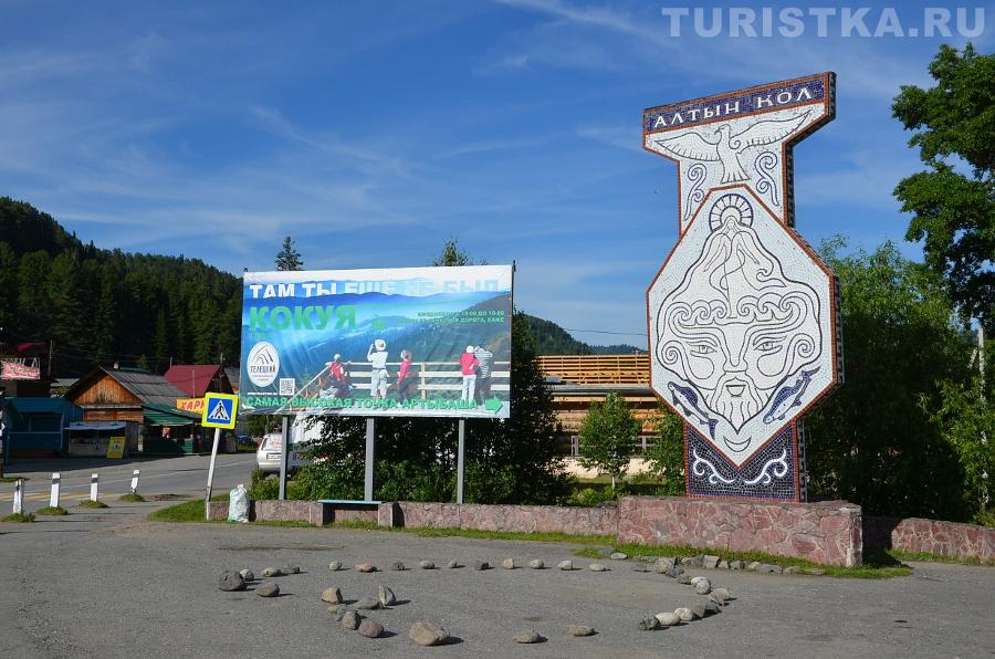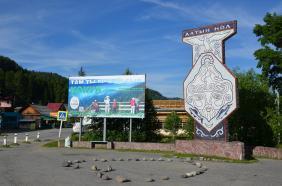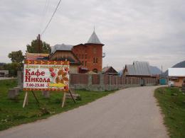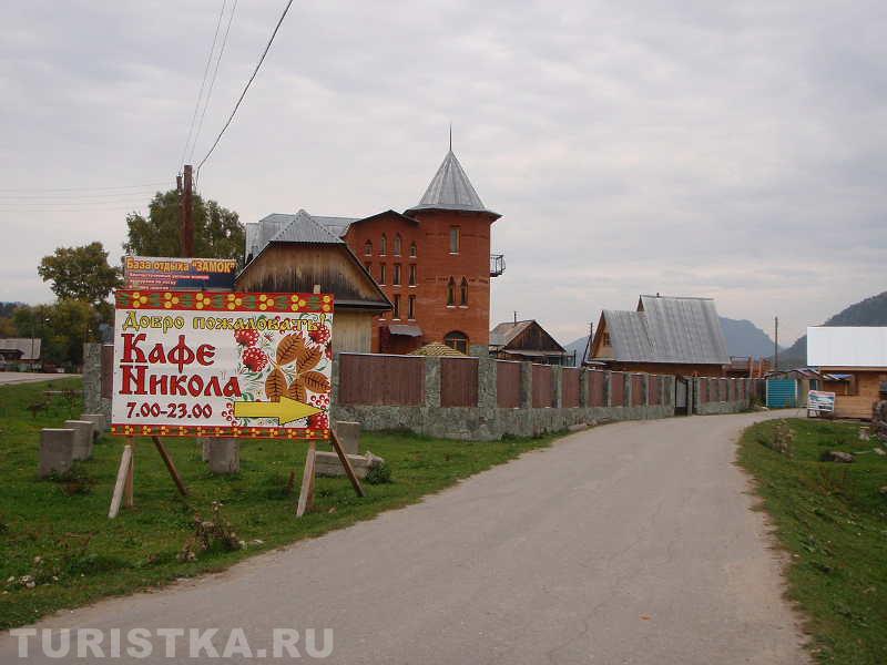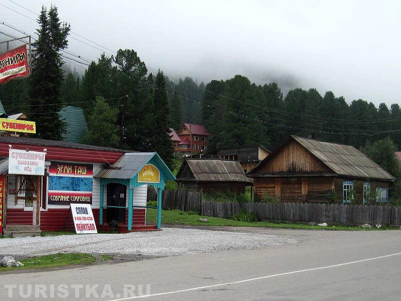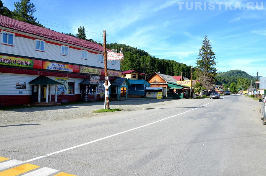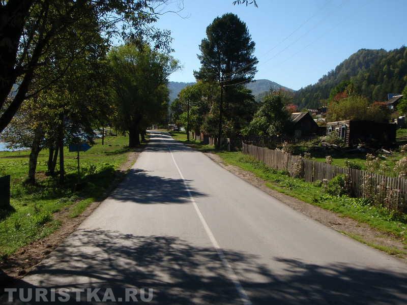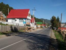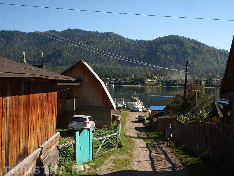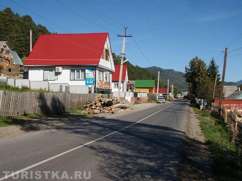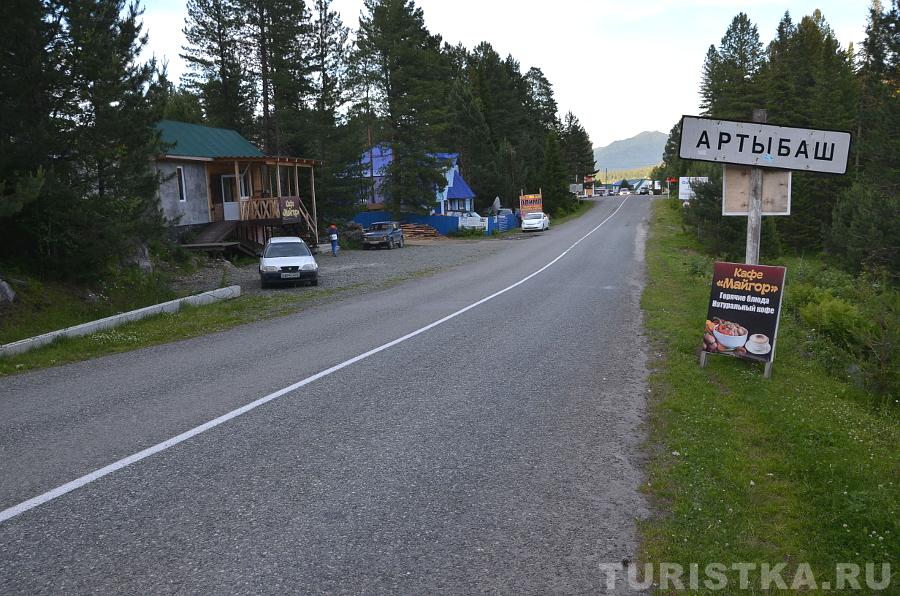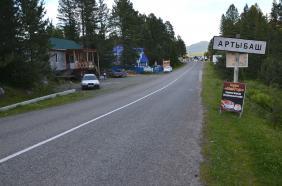 На въезде в село Артыбаш стоит автозаправка. Главная улица села Телецкая, проходит параллельно береговой полосе. Справа и слева от нее расположились сельские дома и базы отдыха. Наверное, совсем скоро вся береговая линия будет представлять череду турбаз и усадьб, которые предлагают отдых туристам. Впрочем, базы на "второй линии" тоже неплохо устроились, так как берег идет с повышением от озера к горам и получается эффект амфитеатра на Телецкое озеро можно любоваться с возвышения.