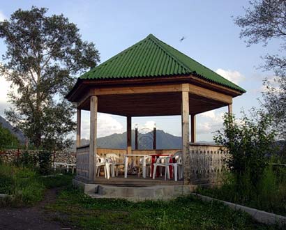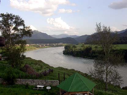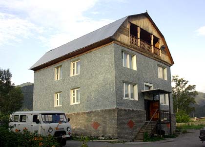 Чемал в двухстах метрах справа от трассы. Гостиничный комплекс представляет собой трехэтажный коттедж с комфортабельными номерами и оздоровительный комплекс с сауной и бассейном. На территории базы есть еще летняя беседка с живописным видом на Катунь. В разгар сезона на берегу Катуни иногда организуется летний кемпинг.