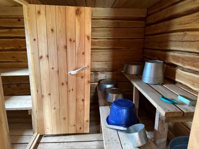 душ и туалет расположены в отдельном здании, обеспечивая дополнительный комфорт.