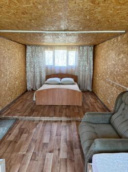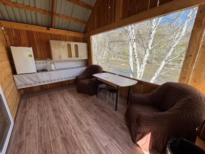 Дом 3-местный с видом на реку c удобствами. Две полутораспальные кровати, холодильник, чайник, стол, плитка электрическая. Терраса с видом на реку. Санузел: туалет, раковина. Горячий душ на территории. Аренда дома