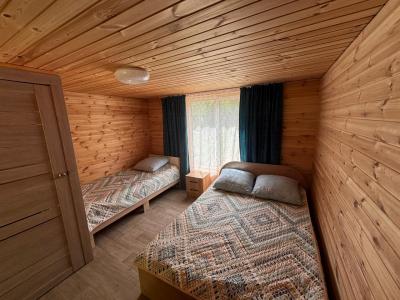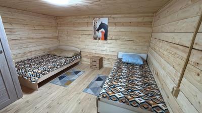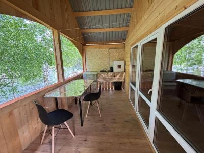 Дом 4-местный с видом на реку c удобствами. Две двухспальные кровати (в одном диван), холодильник, чайник, стол, кресла, мангал, закрытая веранда с видом на реку. Санузел: туалет, раковина. Горячий душ на территории.