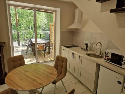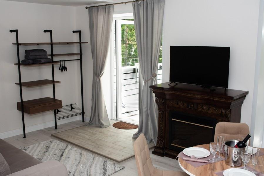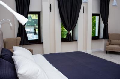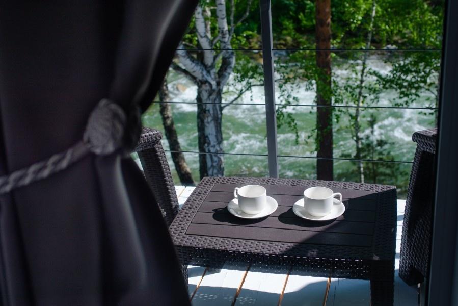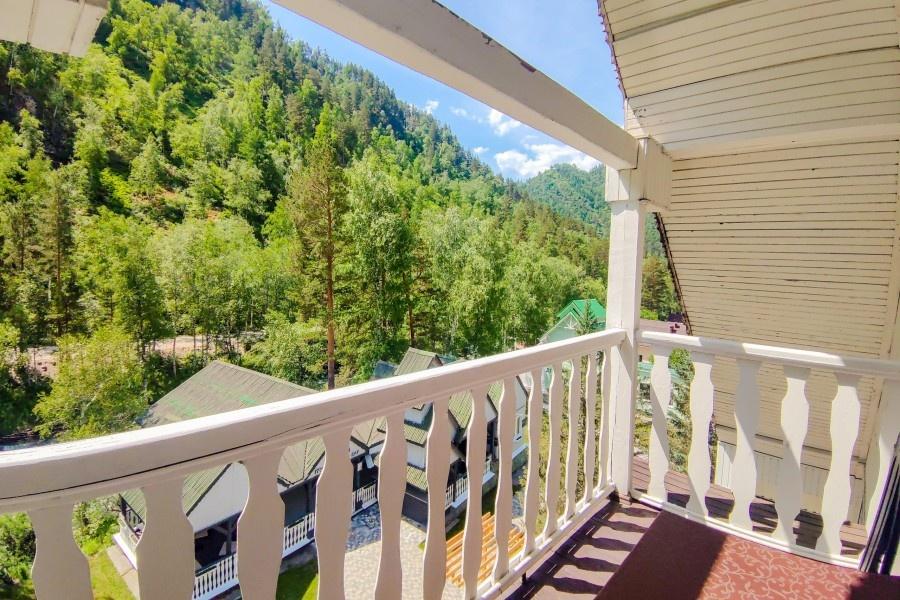 Двухкомнатный номер в корпусе №3, состоит из гостиной и спальни. В номере: двуспальная кровать, мягкая мебель (раскладной диван), платяной шкаф, тумбочки, холодильник, утюг, чайник,фен, набор посуды, мини-бар, ТВ, DVD, балкон. Вид на реку. Туалетная комната: WC, раковина, ванна. 2 осн.места + 2 доп.места (раскладной диван).