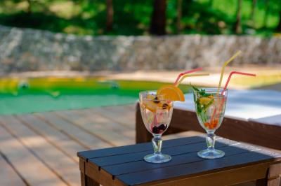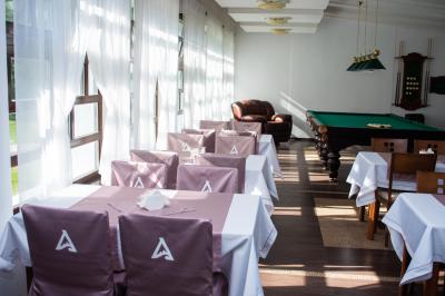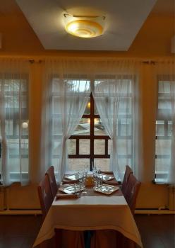 ресторан (74 мест), банкетный зал (21 человек), летнее кафе-бар, 2 открытых бассейна (взрослый d 14м и детский d 6м), конференц-зал (55 мест), медицинский кабинет, площадка для барбекю, мангал, беседки, костровище, парковка (бесплатно), часовня и смотровая площадка, Wi-Fi доступ в интернет во всех номерах и на территории бесплатно.