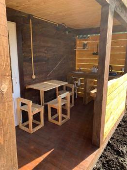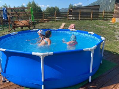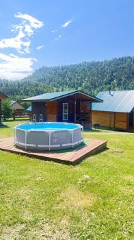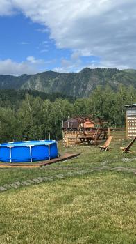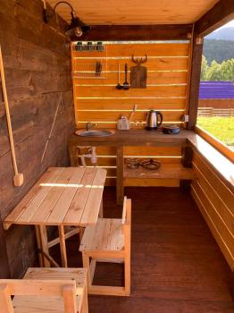 Санузел, душ с горячей водой. Кухня. Двухспальная кровать и двухспальный диван. На веранде стол и стулья, где можно сидеть вечерами и наслаждаться красотой горного Алтая. Цена актуальна при бронировании от 2-х суток: