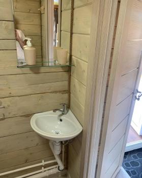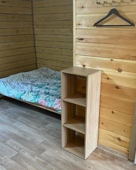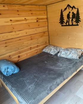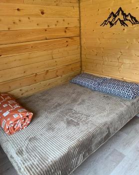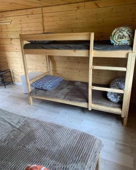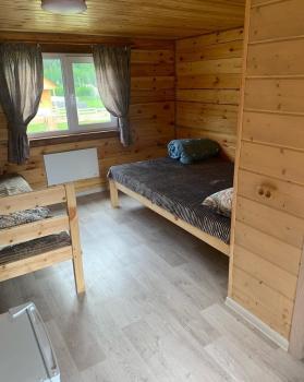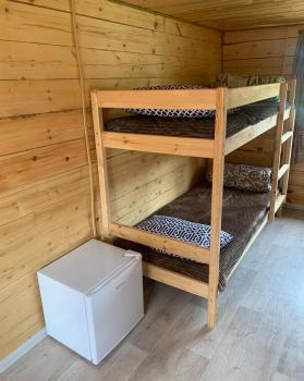Двуспальная кровать, двухъярусная кровать, душ, туалет, раковина, горячая вода, холодильник, обогреватели. Веранда.