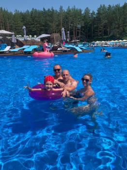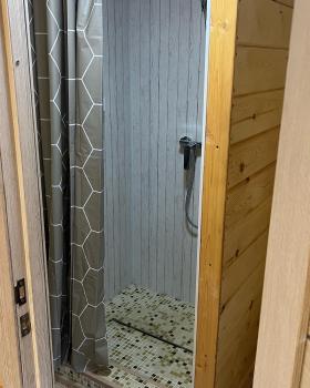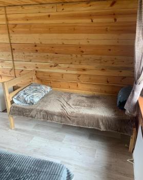 Двуспальная кровать, односпальная кровать, душ, туалет, раковина, горячая вода, холодильник, обогреватели. Веранда.