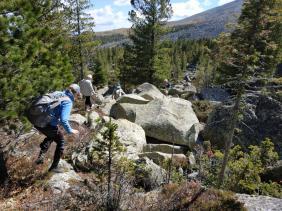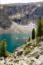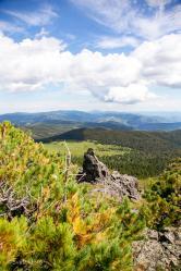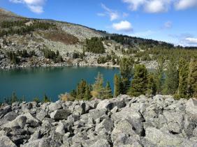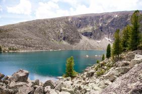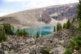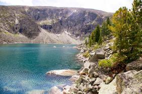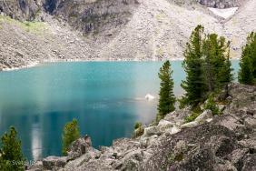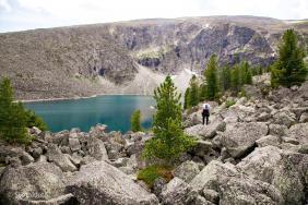 Уазики высаживают туристов на стоянке, и дальше минут 10-30 вы поднимаетесь к озеру пешком (зависит от того, где вас высадили: поближе или подальше от озера). Тропа проходит через заросли карликовых берез, теряется на огромных валунах курумника и постепенно поднимается в озеру.