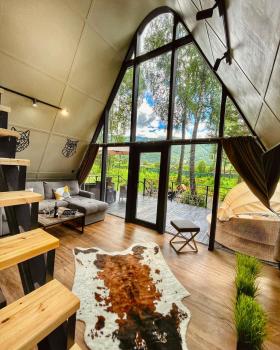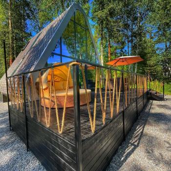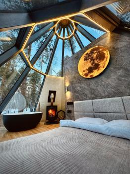 KONUS360 - дом уникальной формы, в стиле геометрического конуса, с высокими 7-ми метровыми стеклянными потолками, печью-камином и огромной ванной на 500 литров, приватной гриль зоной и террасой, что позволяет получить максимум удовольствия от отдыха.