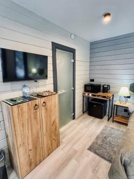 Комфортное размещение до 4 х человек на площади 32 кв.м (жилая 25 кв.м, терраса 7 кв.м).