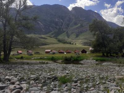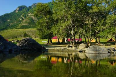 Эко база "Чулушманская березка" расположена рядом с Каменными грибами и водопадом Учар на берегу реки Чулышман в Республике Алтай у подножья горы Ак-Корум.