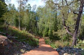 Самая протяженная тропа, расположена между верхними станциями гондольного и кресельного подъемника Восход. На верхней станции вы увидите скульптуру Кезер Таш Баатыр Когудей Мерген (богатырь Когудей Мерген). Богатырь Когудей Мерген "смотрит" на восток, как бы приветствуя солнце, и "просит" благословения для алтайской земли и людей, здесь живущих.