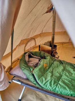 Экспедиционный шатер - это вариация походной палатки, он отличается повышенной прочностью, ветроустойчивостью и способностью выдерживать сложные условия. В каждом экспедиционном шатре предусмотрено 2 раскладушки, для комфортного сна мы даем карематы/спальники. В каждом экспедиционном шатре установлена печь, которую можно растопить для уютных и теплых вечеров