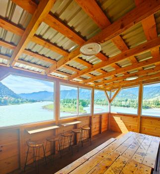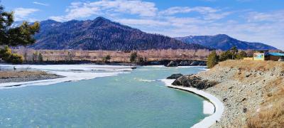 Из беседки изумительный вид на Катунь круглый год. Река не замерзает.