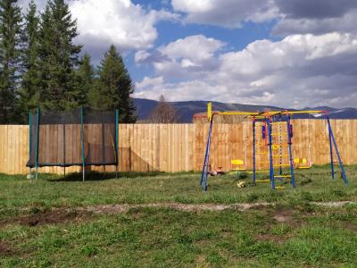 Баня, детская площадка, песочница, батут, летняя кухня, мангалы, коптильня, очаг, ручей на участке из горной реки,