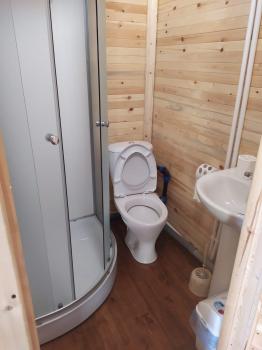 В номерах на 2 этаже: 2-х-спальная кровать, 2-х-ярусная кровать (подходит и для взрослых, и для детей) , стол, стулья, шкаф для одежды, посуда, постельные принадлежности, по 2 полотенца на каждого, плитка, чайник, холодильник, фен, обогреватель. Удобства (душевая кабинка, унитаз, раковина, горячая вода) в соседнем здании, в 10 метрах.