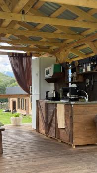 - 1 этаж с камином на 6 человек: 2 спальни по 3 человека (1 односпальная и 1 двуспальная кровати), кухня-гостиная (со всем необходимым для приготовления), душ и туалет. Для уюта и теплого вечера можно зажечь камин.