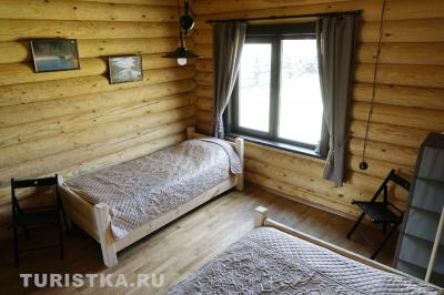 На локации "Коттедж" большой теплый дом, есть баня и купель. Круглогодично.