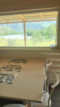 Все дома благоустроены, оборудованы санузлами. У каждого дома есть своя веранда, с которой открываются прекрасные виды на бурлящую Катунь и горные хребты. Дома сделаны в эко-стиле из оцилиндрованного бруса алтайской пихты (запах дерева!).