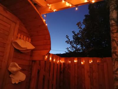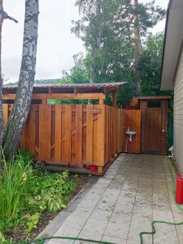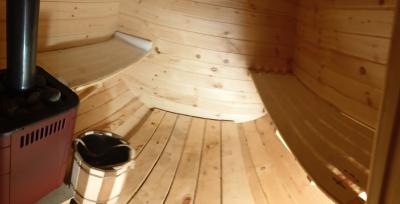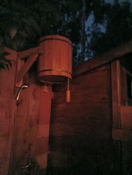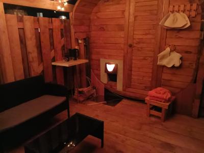 Жаркая парная, уединенная романтичная зона отдыха с камином на свежем воздухе, обливное ведро, душ, туалет, простыни, травяной чай.