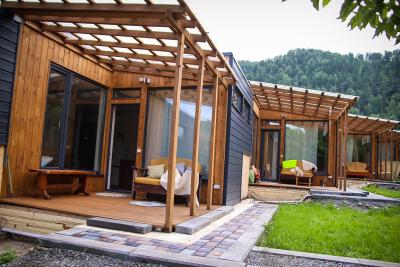 Уютные домики с панорамными окнами видом на горы