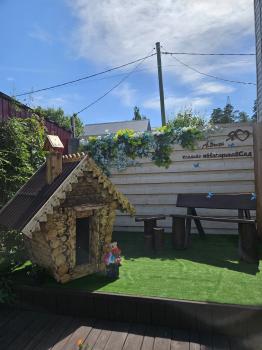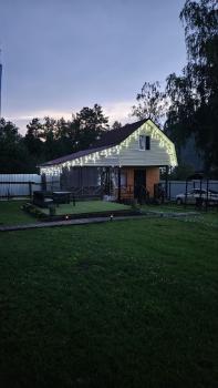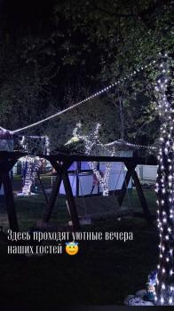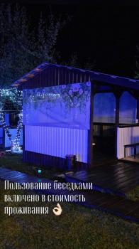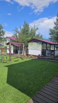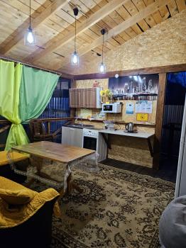 Прилагается к дому летняя беседка-веранда закрытая мягкими окнами, что помогает в прохладную или дождливую погоду комфортно прибывать в беседке, шторы, оборудована кухонной зоной, укомплектованной холодильником, чайником, посудой, микроволновка, печь, казан, моющие средство, кухонное полотенце, губка для мытья посуды, 2 стола, стулья, рядом с домом мангал, своя лаунж-зона с садовой мебелью, стол.