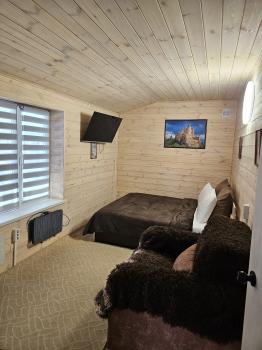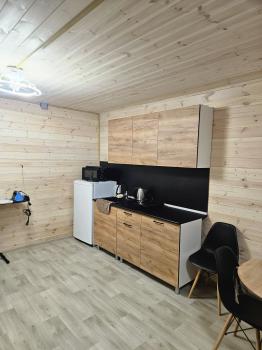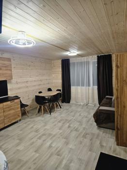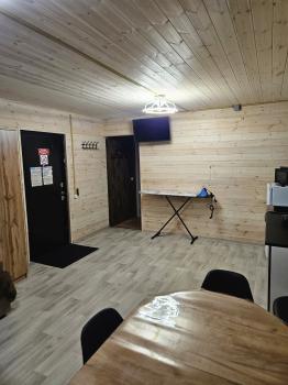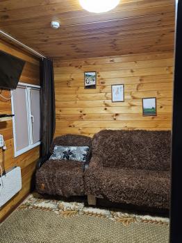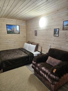 - Два номера с размещением 4-6 человек с двуспальными кроватями (160*200), шкафами для одежды, душ, туалет, пастельное белье, комплект полотенец из 3шт (2 компл), гостиная оборудованная зоной кухня, стол, стулья, посуда, электроприборы, микроволновка, холодильник, гладильная доска, утюг, сушилка для белья, телевизор, раскладной диван, с возможными дополнительными спальными местами (раскладушка);