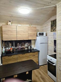 Ø В доме имеется зона кухня, оборудованная кухонной мебелью, бытовой техникой и комплектом посуды.