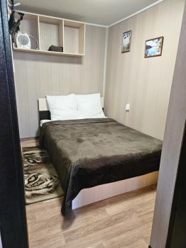 Два номера с размещением 4-6 человек с двуспальными кроватями (160*200), шкафами для одежды, душ, туалет, пастельное белье, комплект полотенец из 3шт (2 компл), гостиная оборудованная зоной кухня, стол, стулья, посуда, электроприборы, микроволновка, холодильник, гладильная доска, утюг, сушилка для белья, телевизор, раскладной диван, с возможными дополнительными спальными местами (раскладушка);
