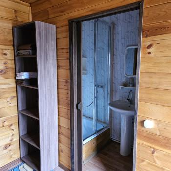 Для 2 этажа душ, туалет рядом стоящее здание (мыло, туалетная бумага, гладильная доска, утюг, сушилка для белья).