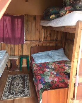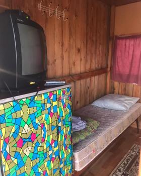 четыре спальных места (кровати) матрасы, подушки, одеяла, электрические розетки, освещение, вода, холодильник, чайник, микроволновка, телевизор, посуда, элект. плитка, постельное белье, Wi-Fi.